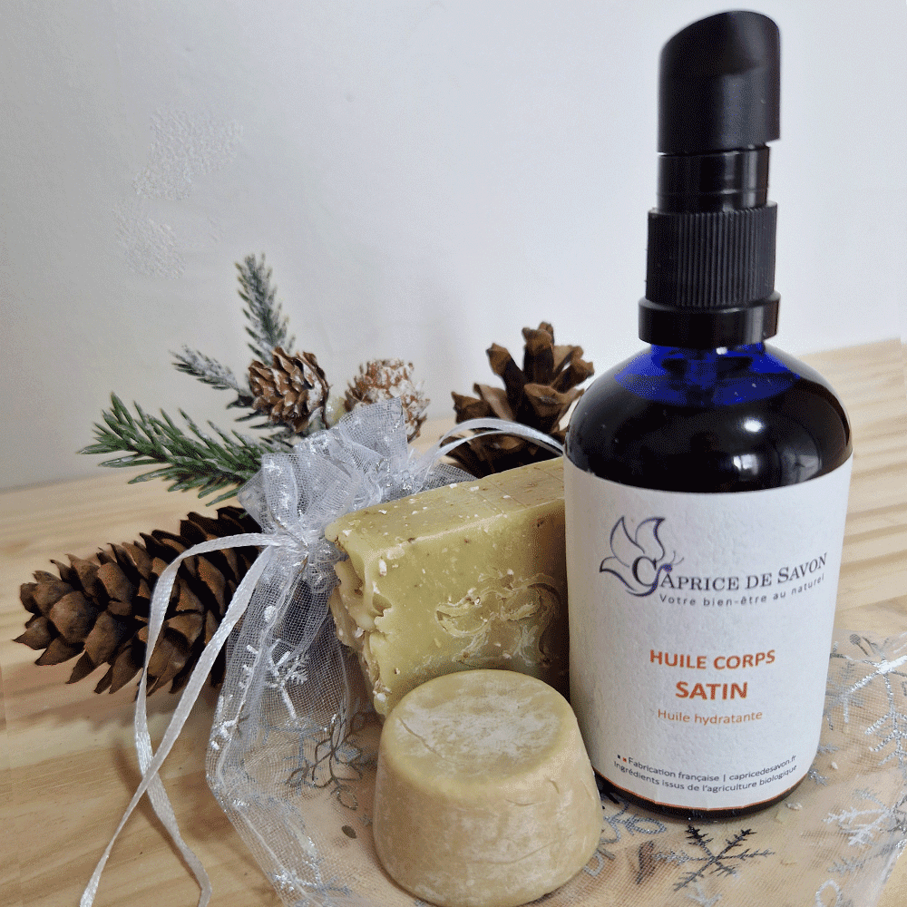 - 1 Huile Corps SATIN de 100ml pour préserver l'hydratation naturelle du film hydolipidique qui permettra à votre peau de mieux lutter envers les agressions extérieures (le vent, le froid, la pollution). Des huiles riches en vitamines et anti-oxydants pour contribuer et maintenir une belle peau souple, lisse et soyeuse avec une légère tonalité de fraîcheur à la verveine citronnée.